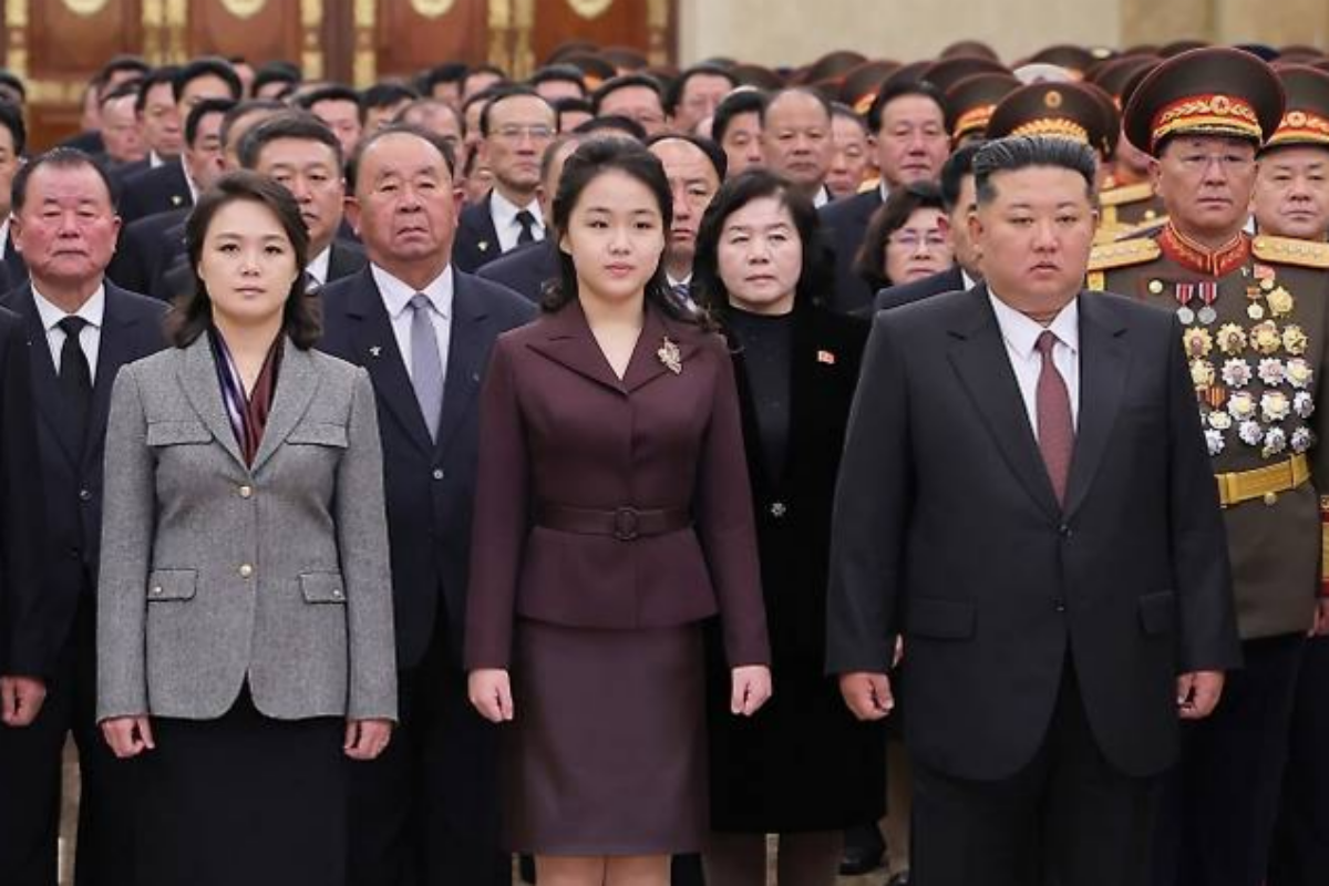 이전까지는 김정은 단독 사진이나 김정은–시진핑 사진이 중앙을 차지해 왔다는 점에서, 부녀 동반 사진의 배치는 분명한 변화다.